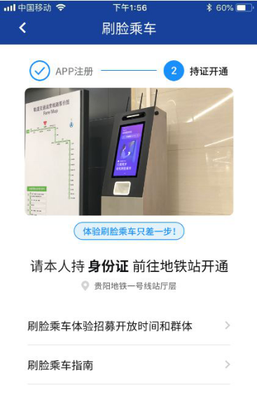 您需先在貴陽(yáng)地鐵APP注冊(cè)刷臉乘車,再在地鐵自助服務(wù)機(jī)完成開(kāi)通流程。