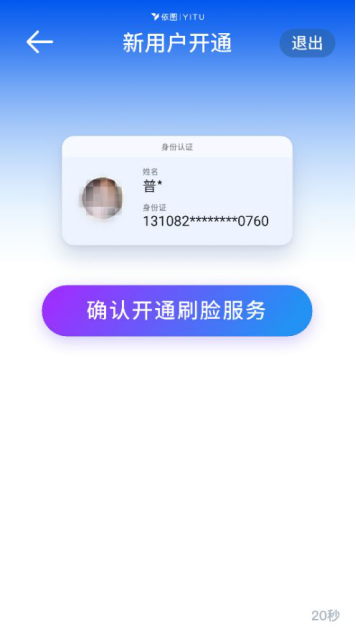 注冊(cè)成功,提示攜本人身份證前往自助服務(wù)機(jī)開(kāi)通刷臉?lè)?wù)。