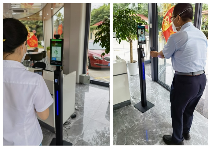 早在去年初冬,巴士集團認識到精準防控的重要性,已經(jīng)開始采用帝圖科技的第一代隨申碼核驗一體機,率先安裝在了駕駛員培訓中心的大門口。而今年春天,上海的防疫要求再一次升級迭代,帝圖科技緊跟政策要求,推出了最新一代的立柱式“數(shù)字哨兵”,它集實時測溫、隨申碼核驗、核酸信息核驗、抗原信息核驗為一體,同時支持通過刷身份證核驗,方便老人或小孩等沒有智能手機的人群也能快速核驗通行。儼然是一個溫暖的智慧型 “數(shù)字哨兵”,精準防控,守護門崗。